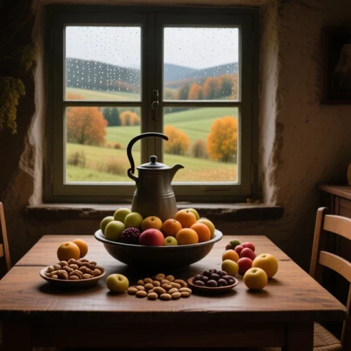 - Frutas de temporada: manzanas, peras, caquis, granadas.